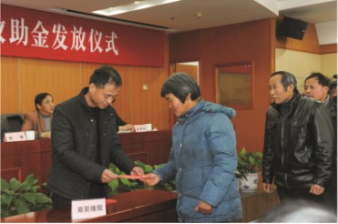 仪式上,,市慈善总会会长徐八斤转达了2012年度全市募捐救助和2013春节前的救助安排情形。。 。。我公司在此次救助金发放仪式上发放了6万元救助金,,资助了12户贫困家庭,,公司向导体现慈善事业是我们企业的责任,,也是义务。。 。。我们企业的生长壮大离不开社会各界的资助和支持,,现在我们希望尽我们所能资助更多需要资助的人。。 。。