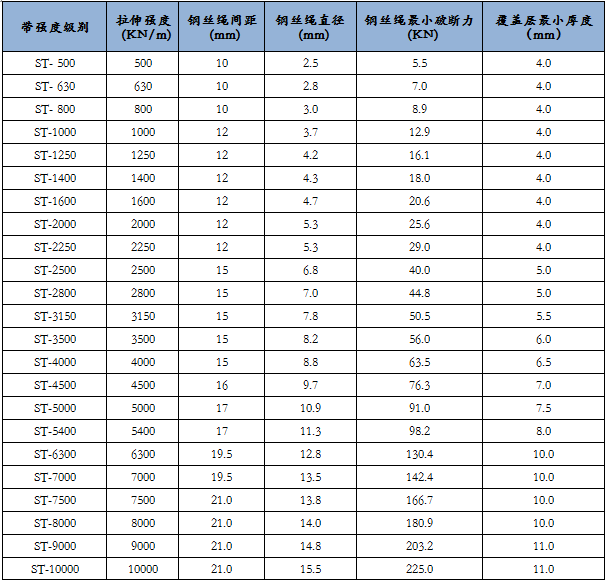 注:笼罩胶厚度、钢丝绳芯直径、绳间距可以凭证客户要求。。